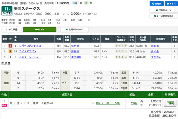 4/6(日)万馬券的中結果 2025年4月6日 novelist 中山6R【的中】3連単50,990円 50万9900円払い戻し!! 中山11R【的中】3連単29,230円 29万2300円払い戻し!! 毎週のように万馬券を輩出している当ブログの会員登録詳細は下記よりご確認ください。 →会員募集中←